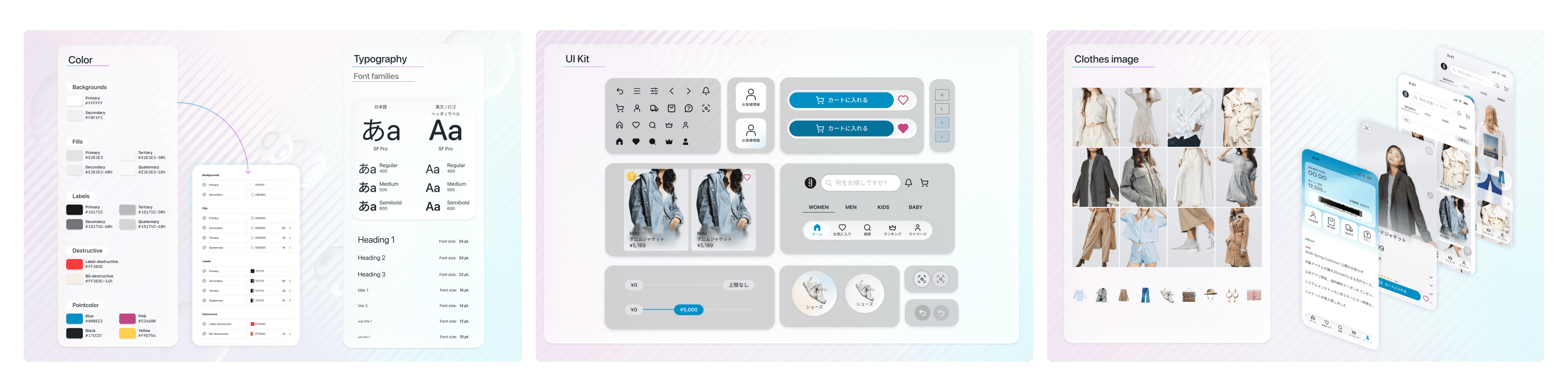 一貫したデザインルールに基づき、視覚情報の最大化とストレスのない画面遷移を徹底することで、ユーザーが迷いなく買い物に没頭できる心地よい操作体験を実現します。