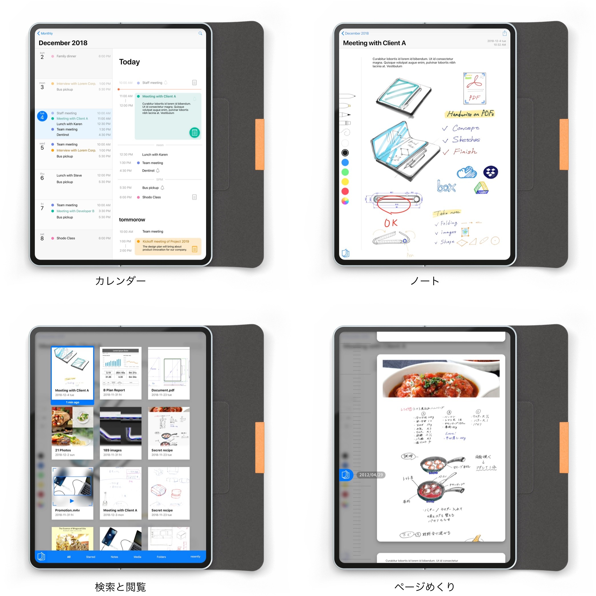 ソフトカバーに包まれた2枚のフレームに折り曲げ可能なディスプレイを搭載した構成は、毎日使うノートが人にとってさらに使いやすい道具になるように意図しています。